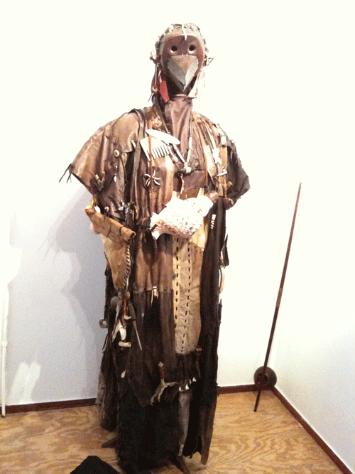 Dohmen's artistic practice was closely linked to anthropological aesthetics. His research in myths and rituals was visually incorporated in his artworks and performances. Together with his family Dohmen spent many years traveling through south east Asia, the Pacific, Australia and New Zealand. His work, inspired by totems and similar artifacts, held a special meaning for Dohmen. Beyond the merely artistic realm the works became magical tools for the artist’s inner life. The Wolf Council is a sorcerous like robe containing a mixture of elements including animal paraphernalia such as monkey hair and snakeskin but also shells, stones and crafted objects. It was worn by Dohmen during the rituals of ‘The full moon society’, a private spiritual gathering regularly held by the artist. This robe now stands as a gate to the artist’s persona but also as a catalyst to the deeper powers of an object.